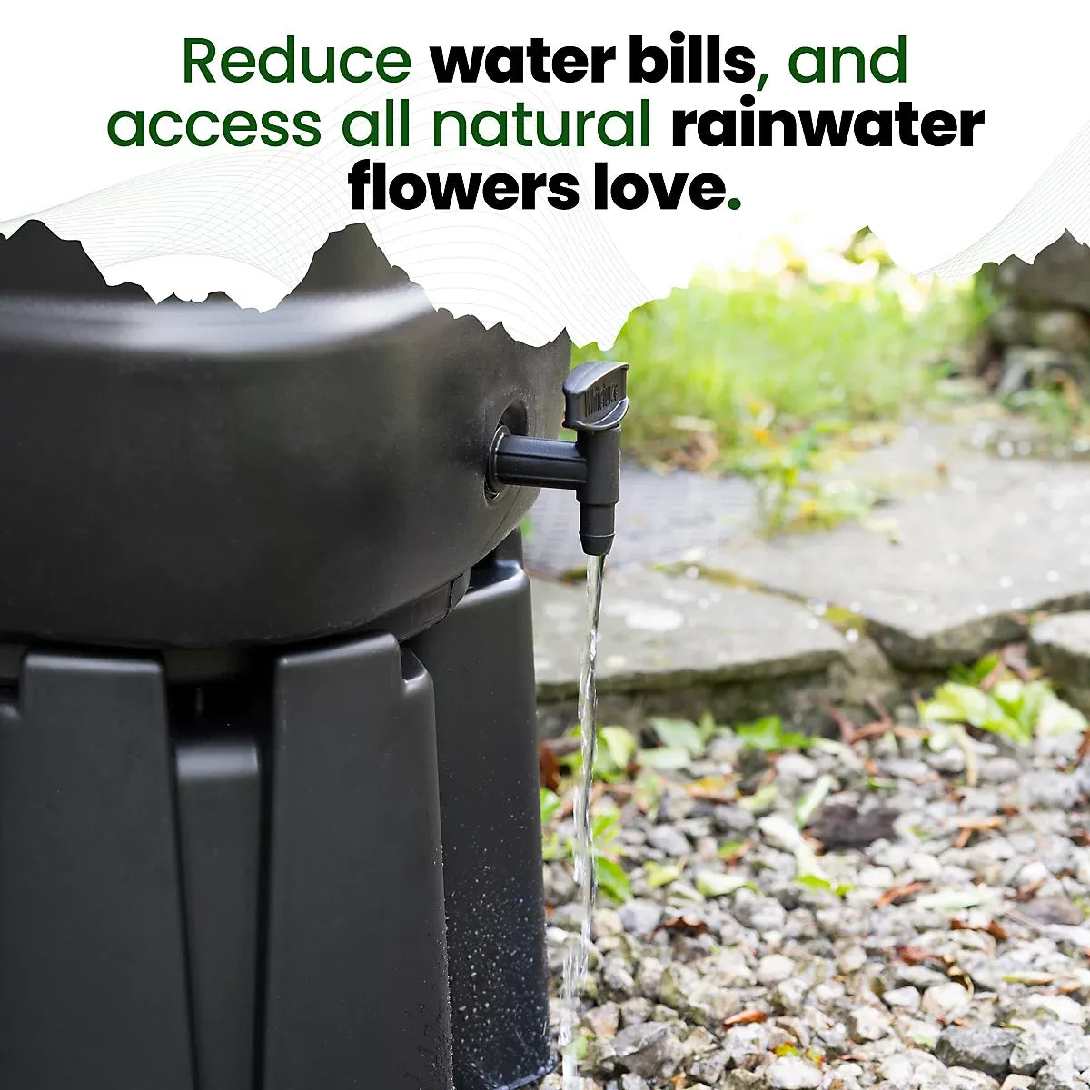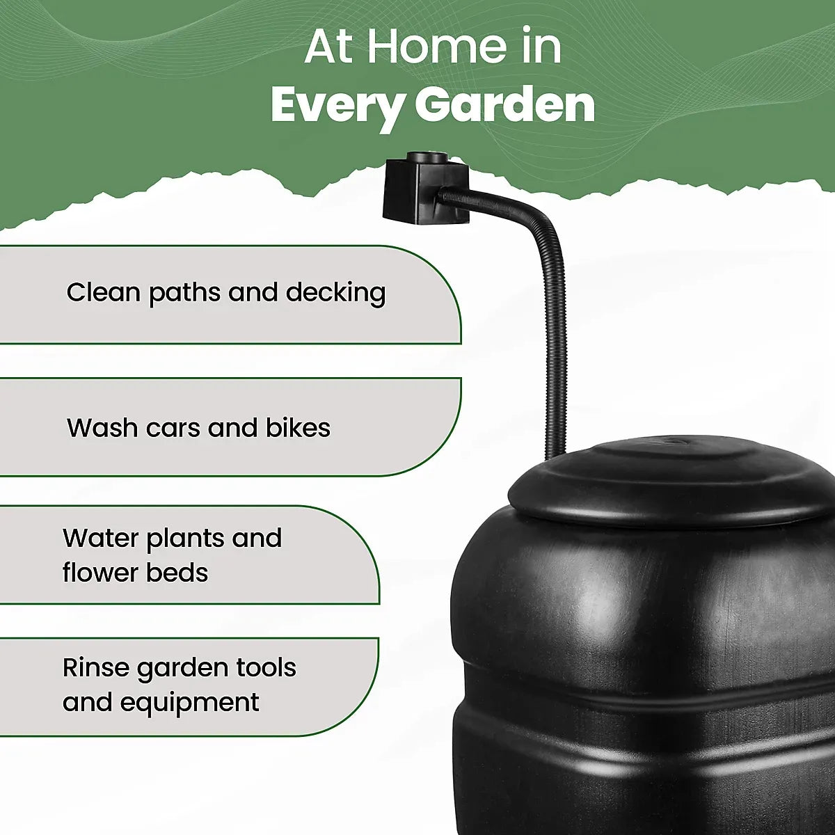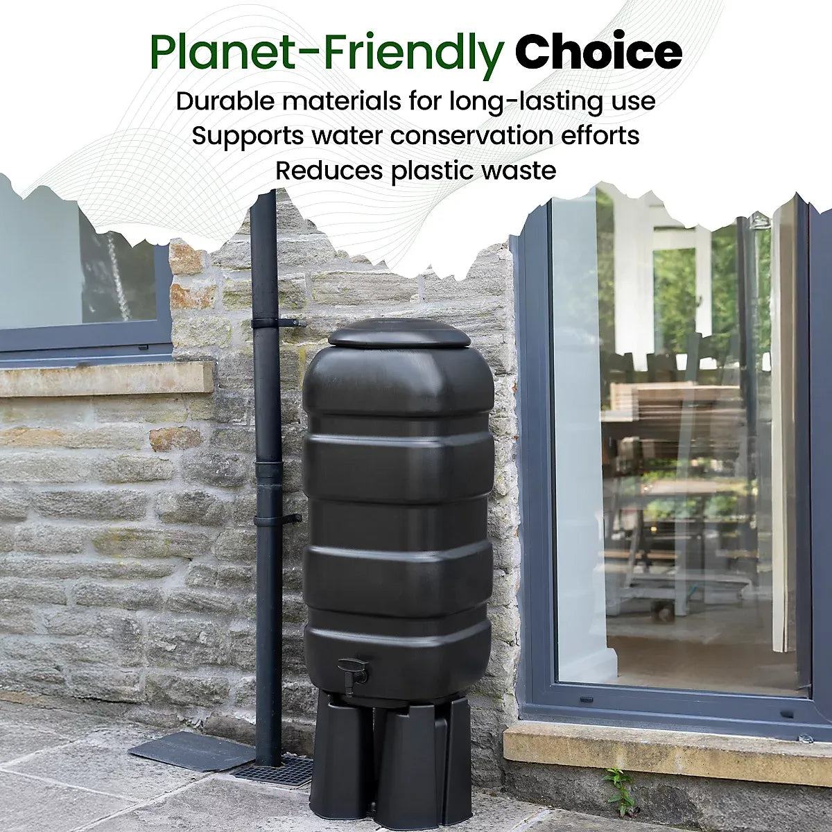 - Comes with Water Butt, Stand, Lid, Tap and Rainwater Downpipe Diverter Kit (with flexible pipe).