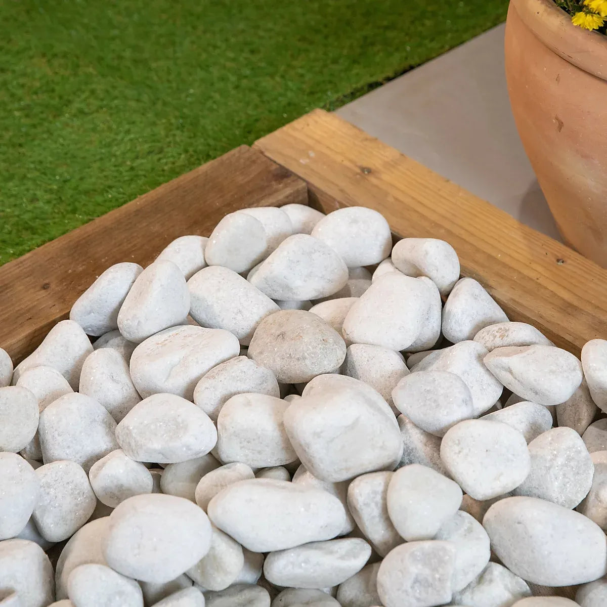 - Large white pebbles ideal for decorating borders, water features and general landscaping use